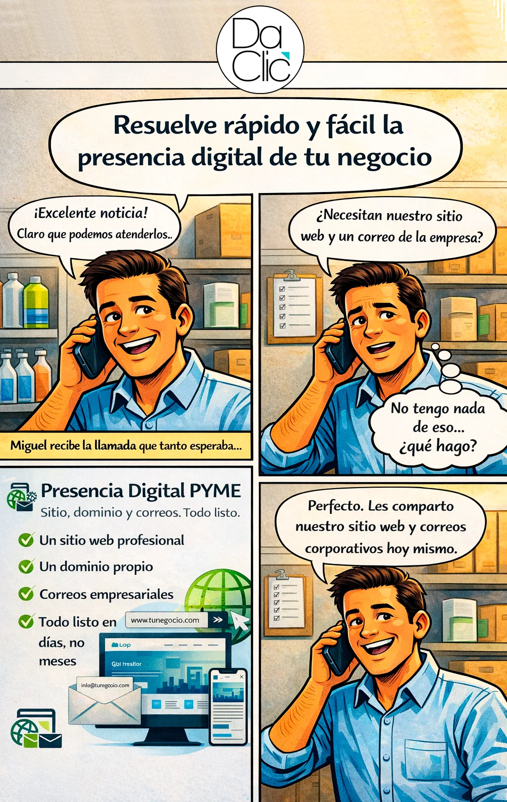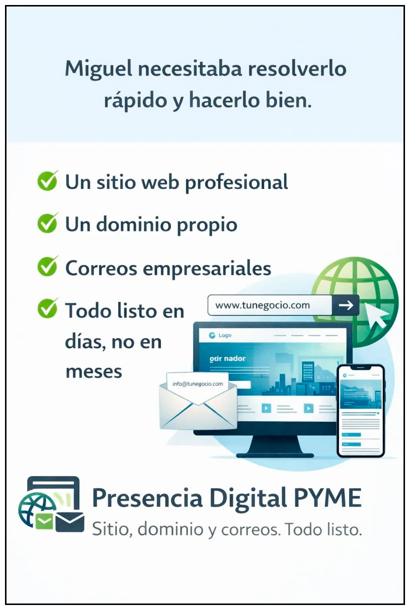 Creamos una solución completa de presencia digital, pensada para pequeños empresarios y emprendedores que necesitan una IMAGEN PROFESIONAL sin gastar de más ni esperar meses.